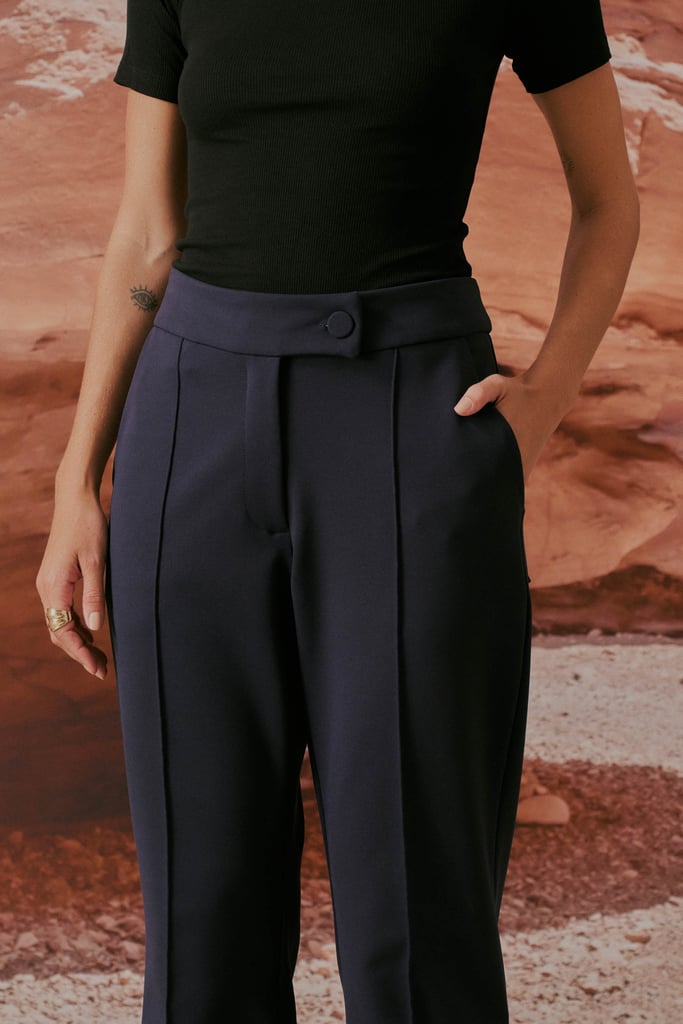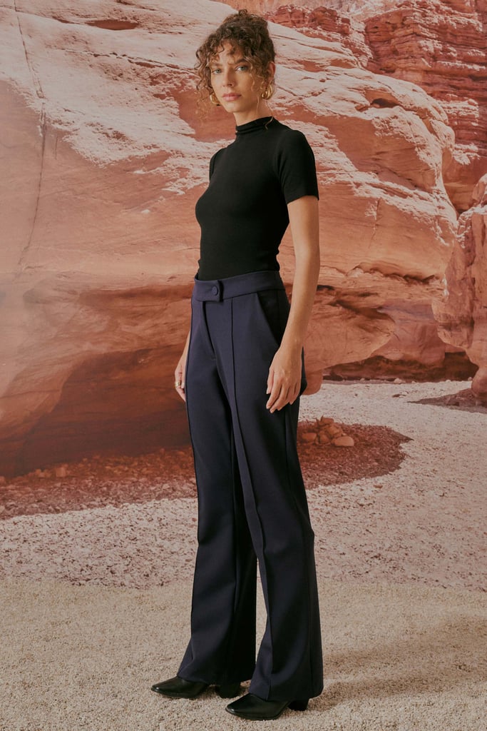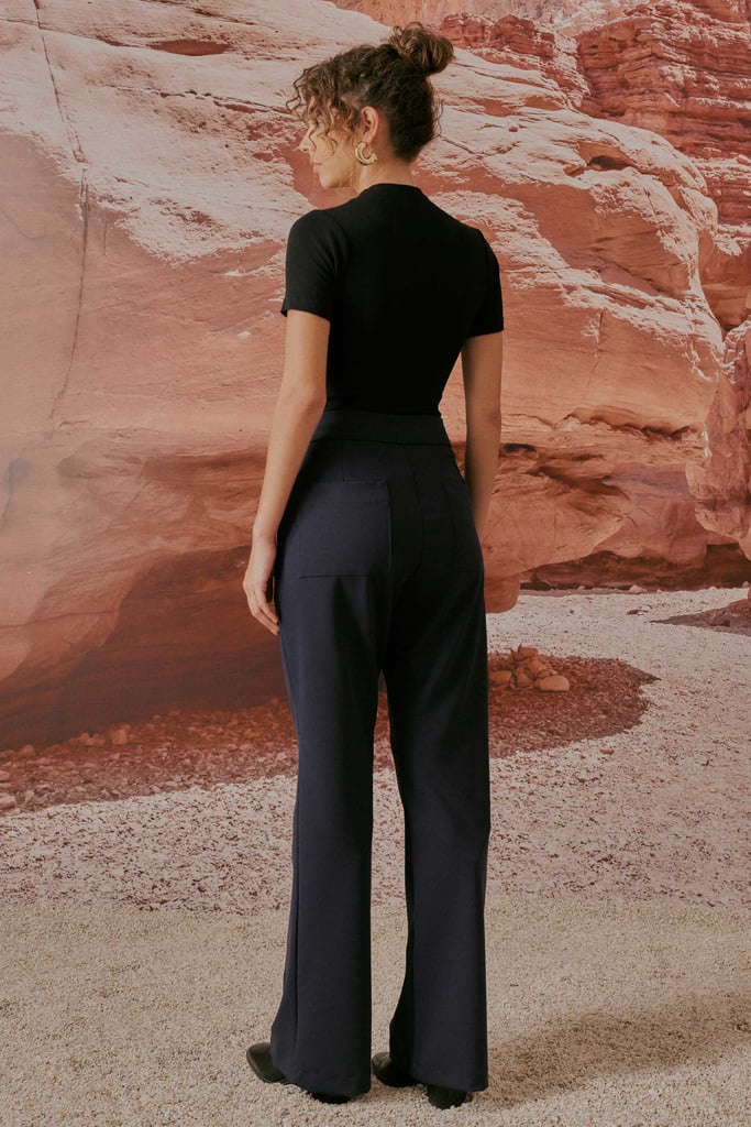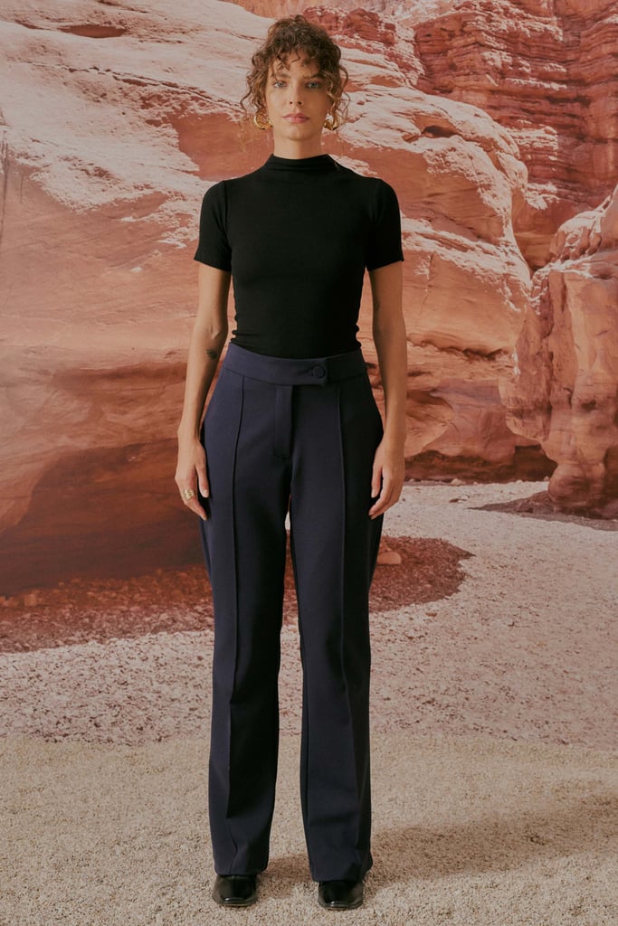 A calça flare une estrutura e conforto em uma modelagem elegante. Confeccionada em malha encorpada com alta elasticidade, proporciona sustentação ao corpo sem marcar, garantindo um caimento impecável e conforto ao longo do dia. Seu design sofisticado conta com bolsos faca, que oferecem praticidade, e nervura frontal, agregando acabamento refinado à peça. O fechamento é feito por zíper frontal e botão forrado, garantindo um visual clean e bem-acabado. Os bolsos traseiros complementam a funcionalidade do modelo. O shape flare, com leve abertura na barra, equilibra a silhueta e alonga as pernas, tornando a peça versátil para diferentes composições.