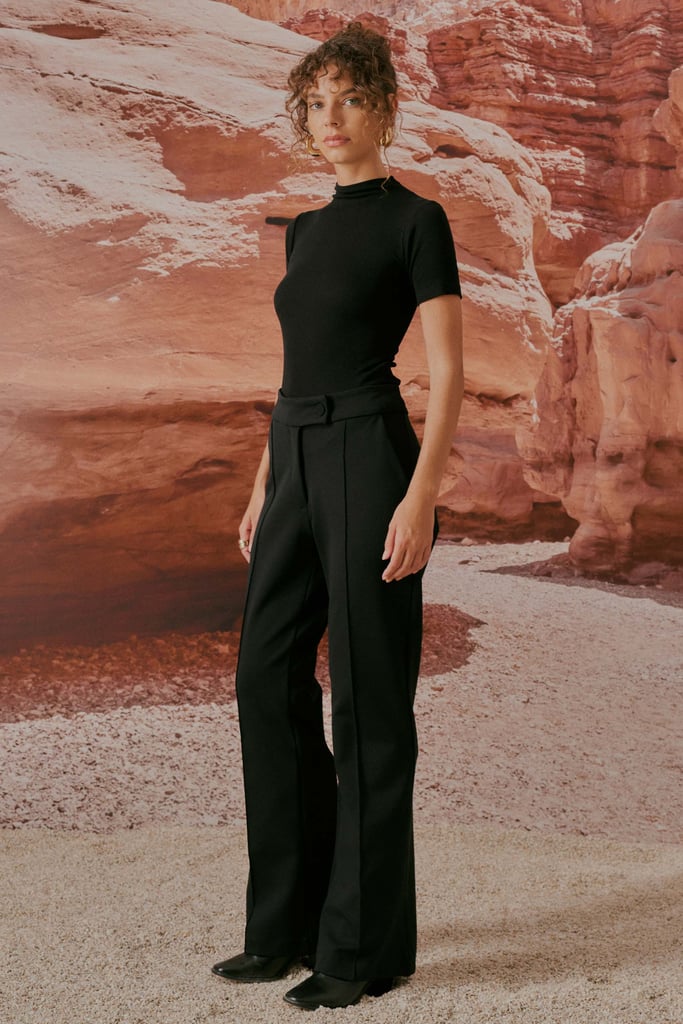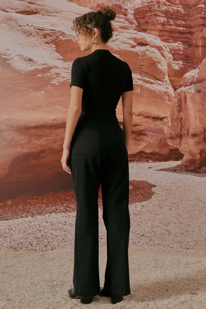 A calça flare une estrutura e conforto em uma modelagem elegante. Confeccionada em malha encorpada com alta elasticidade, proporciona sustentação ao corpo sem marcar, garantindo um caimento impecável e conforto ao longo do dia. Seu design sofisticado conta com bolsos faca, que oferecem praticidade, e nervura frontal, agregando acabamento refinado à peça. O fechamento é feito por zíper frontal e botão forrado, garantindo um visual clean e bem-acabado. Os bolsos traseiros complementam a funcionalidade do modelo. O shape flare, com leve abertura na barra, equilibra a silhueta e alonga as pernas, tornando a peça versátil para diferentes composições.