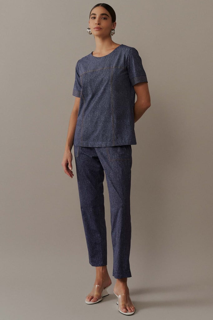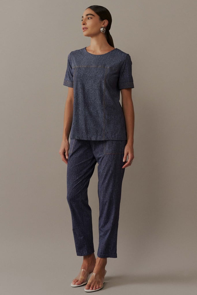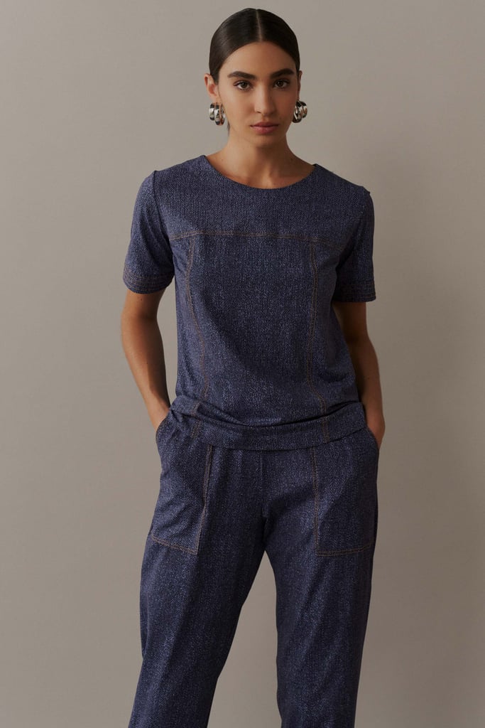 Conjunto em Malha Fluity com Pespontos e Padronagem Jeans