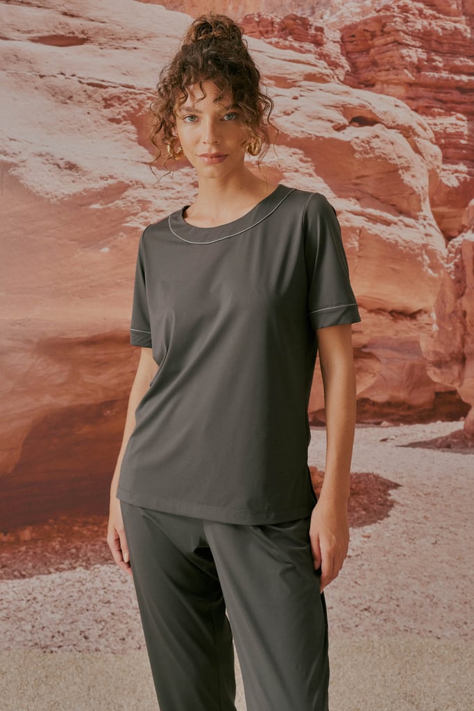 O conjunto em Fluity liso combina elegância e conforto, trazendo um acabamento sofisticado com detalhes de pesponto. A blusa apresenta um decote redondo clássico e mangas curtas, proporcionando um visual clean e atemporal. A calça reta, em nossa modelagem clássica, oferece um caimento impecável, valorizado pelas pregas frontais. Os bolsos laterais e traseiros garantem funcionalidade, enquanto o cós com elástico na parte traseira proporciona ajuste confortável e perfeito ao corpo. Confeccionado em malha Fluity, um tecido premium conhecido pelo toque macio e geladinho, garantindo sensação fresca ao vestir. Além disso, sua composição oferece praticidade, pois não amassa, tornando-o ideal para diferentes momentos do dia a dia. A malha Fluity é uma tecnologia têxtil sustentável, desenvolvida para aliar conforto, leveza e inovação.