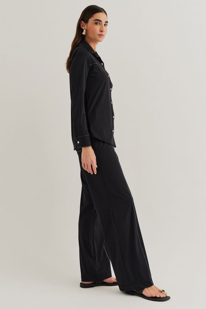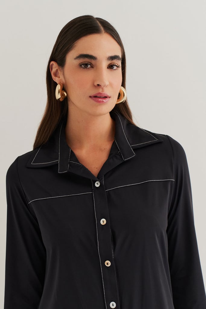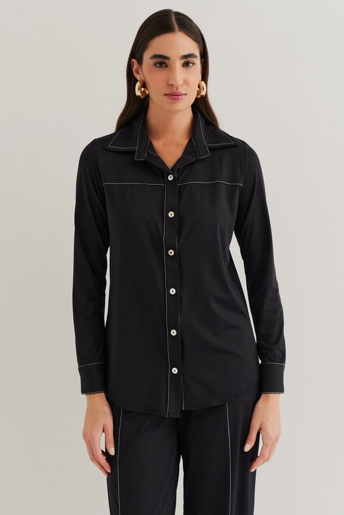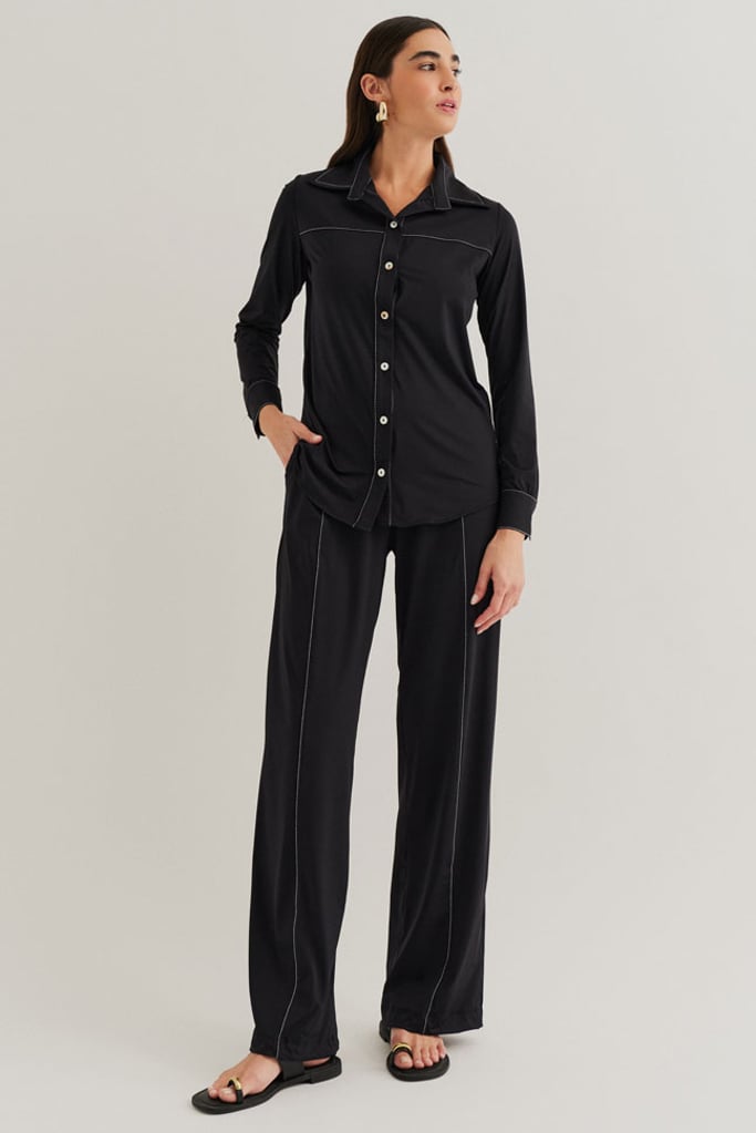 O conjunto em malha Fluity combina sofisticação e conforto em uma proposta moderna e versátil. A camisa possui gola tradicional, vista frontal com fechamento por botões e mangas longas finalizadas com punhos, também fechados por botões. O recorte frontal adiciona um toque de refinamento ao design, enquanto a prega macho nas costas proporciona maior conforto e liberdade de movimento. A calça apresenta modelagem reta e fluida, com nervura frontal que alonga a silhueta, além de bolsos faca e traseiros que conferem funcionalidade ao design minimalista. O toque geladinho e macio da malha Fluity proporciona máximo conforto, enquanto sua leveza e praticidade garantem um visual sempre impecável, já que não amassa. Ideal para diversas ocasiões, esse conjunto pode ser usado com sandálias de salto fino para um look sofisticado ou combinado com tênis para uma abordagem casual chic. Além de elegante e funcional, a malha Fluity é sustentável e tecnológica, garantindo um consumo mais consciente sem abrir mão da qualidade.