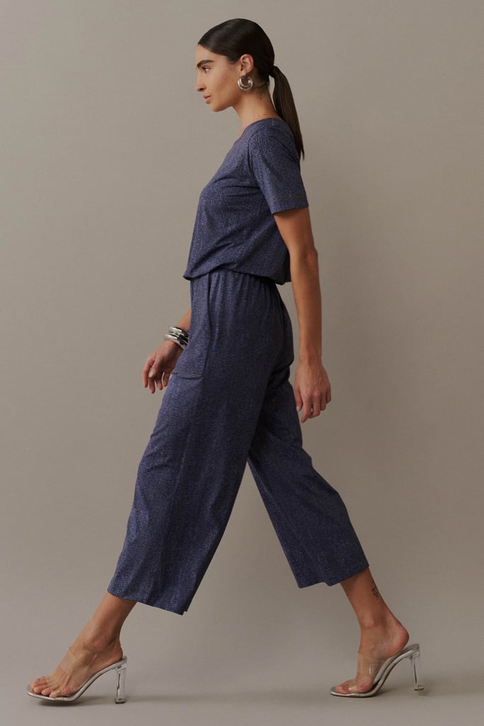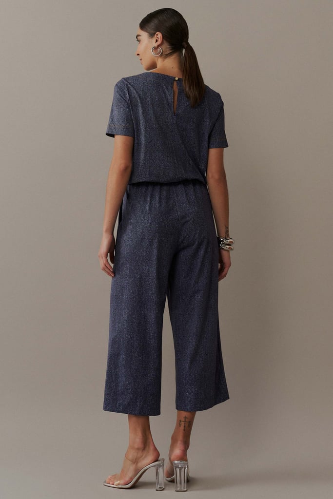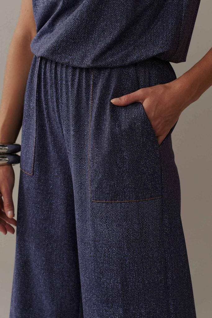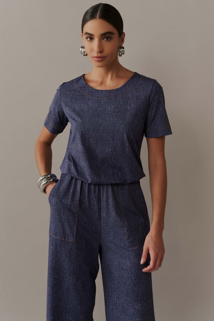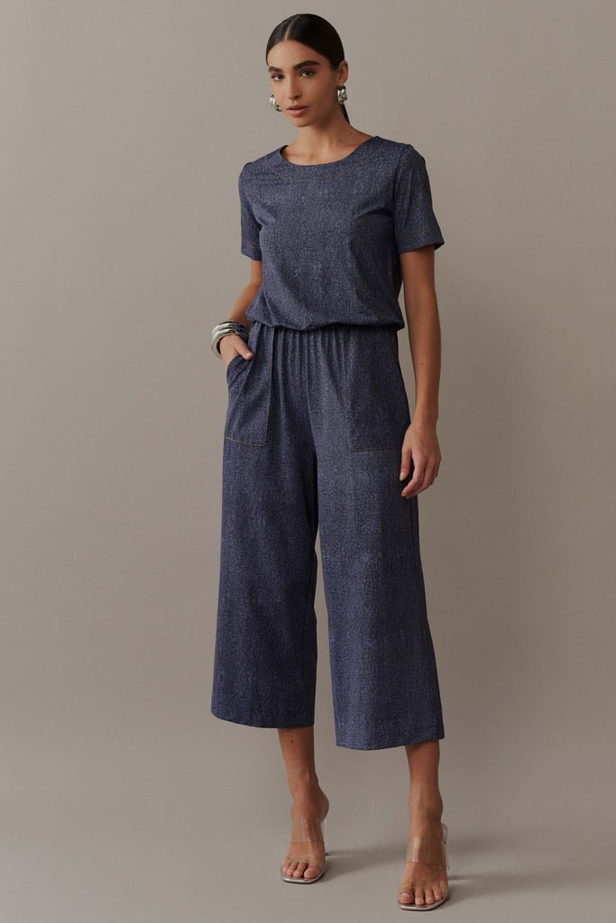 Macacão Pantacourt em Malha Fluity com Pespontos e Padronagem Jeans