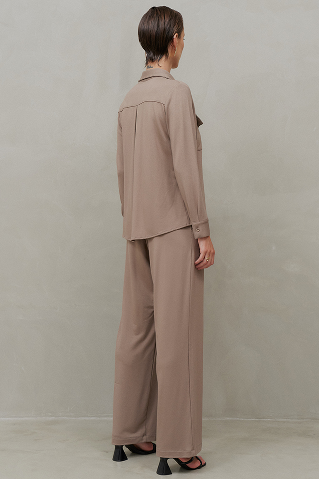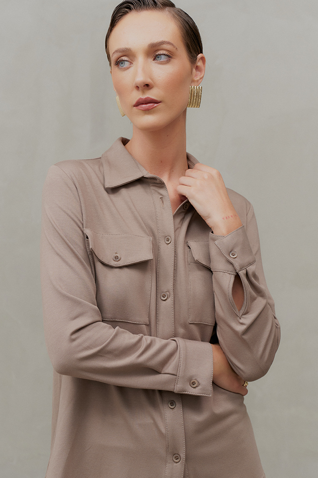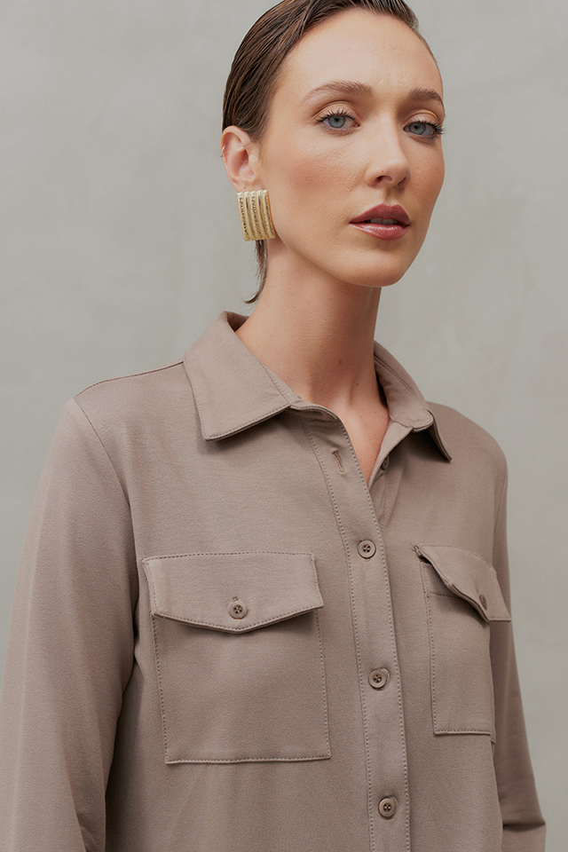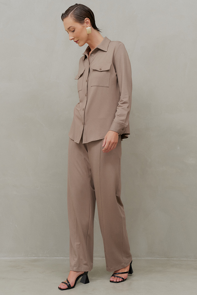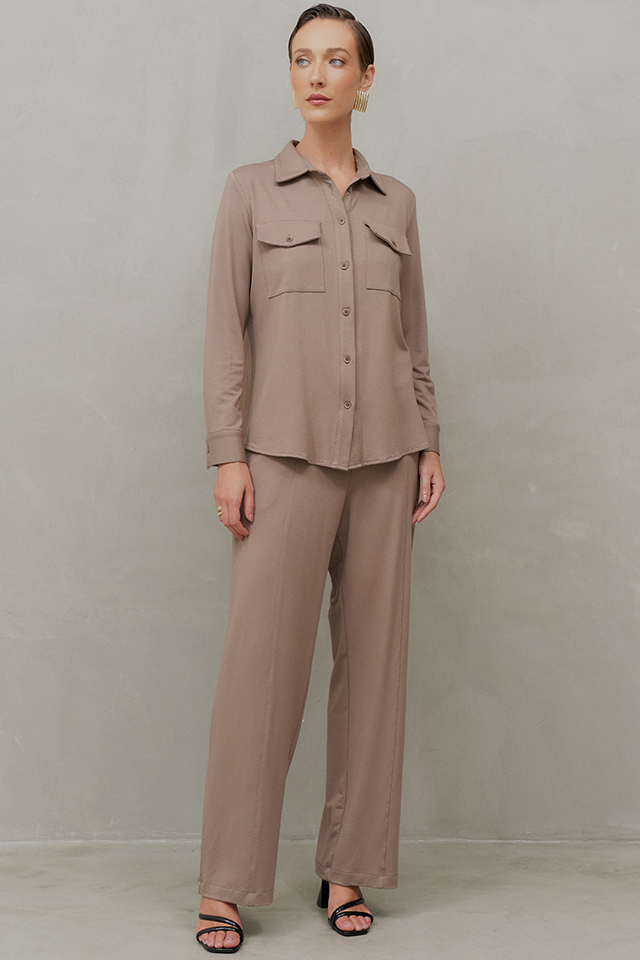 O Conjunto Calça em Moletom Elegance une sofisticação e conforto em uma proposta contemporânea e versátil. A camisa tem modelagem clássica, com gola tradicional, vista frontal com fechamento por botões e mangas longas finalizadas com punhos ajustáveis. O diferencial fica por conta dos bolsos frontais com lapela, que acrescentam um toque utilitário e moderno ao design. A calça segue uma modelagem reta e fluida, garantindo um caimento impecável e alongado. O cós conta com elástico na parte traseira, proporcionando um ajuste confortável sem perder a elegância. O tecido encorpado oferece um toque macio e aconchegante, proporcionando o conforto do moletom sem abrir mão da sofisticação. Ideal para um visual refinado e atual, pode ser usado tanto com salto para uma proposta sofisticada, quanto com flats ou tênis para um look descomplicado e chic.
