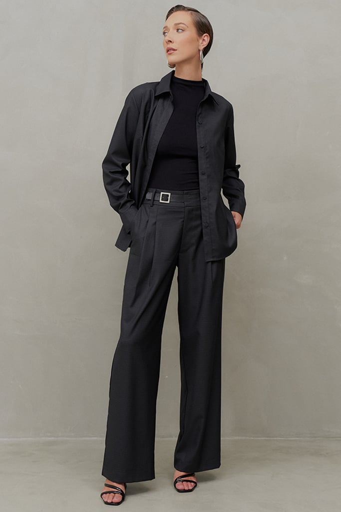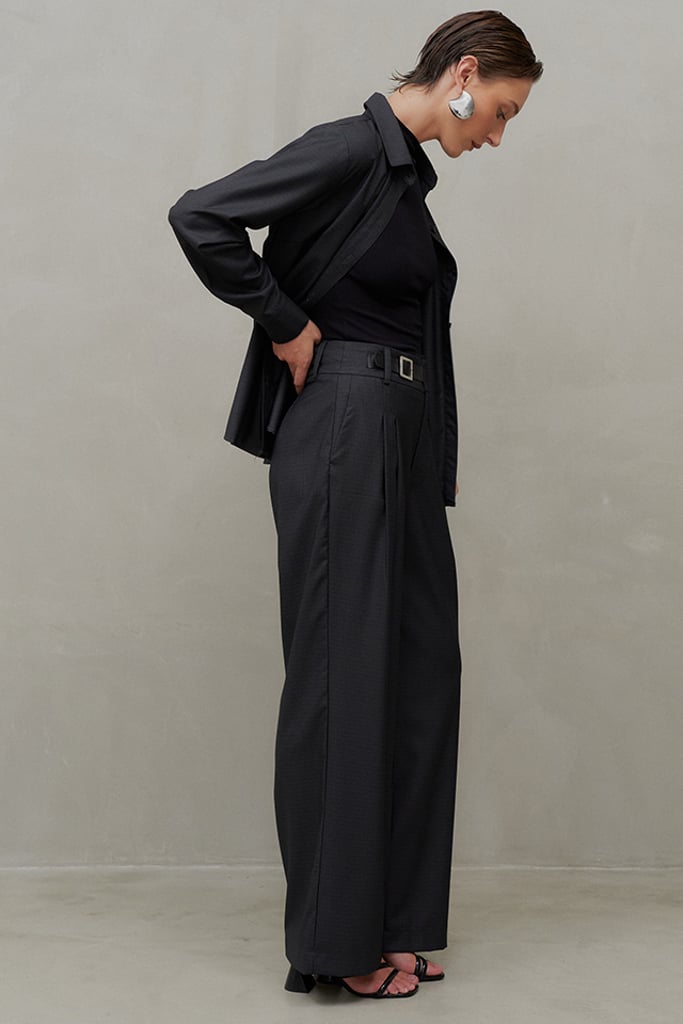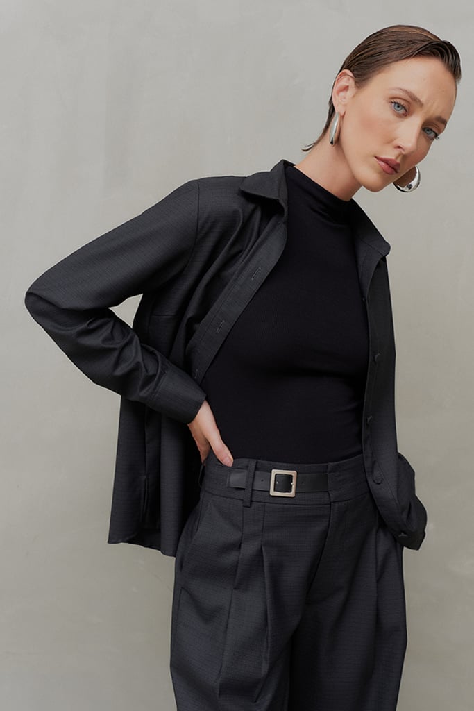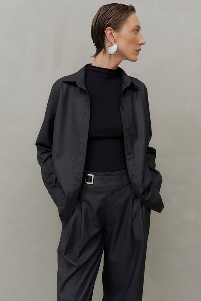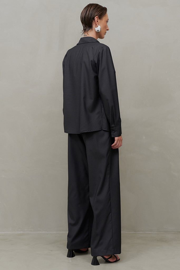 Elegância atemporal com um toque moderno. O conjunto em tecido de alfaiataria com padronagem xadrez é composto por camisa e calça, peças que podem ser usadas juntas ou separadamente, garantindo versatilidade para diversas ocasiões. A camisa tem modelagem clássica, vista frontal com botões forrados e mangas longas com punhos ajustáveis. A calça reta apresenta pregas frontais, bolsos laterais tipo faca e um acabamento sofisticado com zíper e cinto embutido no cós, confeccionado em courino com fivela metálica, agregando ainda mais elegância ao design. Perfeito para um office look refinado e moderno. Nas fotos, a camisa foi estilizada como sobreposição sobre uma blusa, destacando a sofisticação e versatilidade da peça.