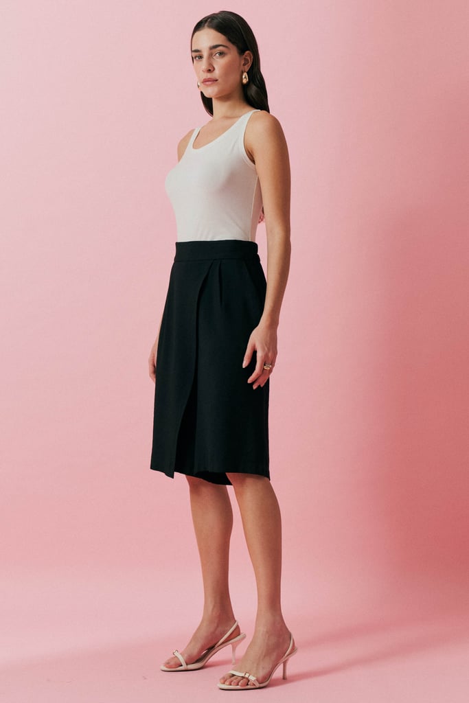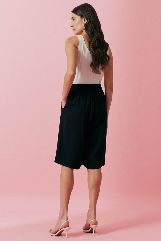 Confeccionada em tecido de crepe, a bermuda possui detalhe de transpasse frontal que adiciona sofisticação ao visual. Conta com bolsos laterais funcionais e elástico nas costas para maior conforto ao vestir. Uma peça versátil que transita com facilidade entre o casual e o elegante.