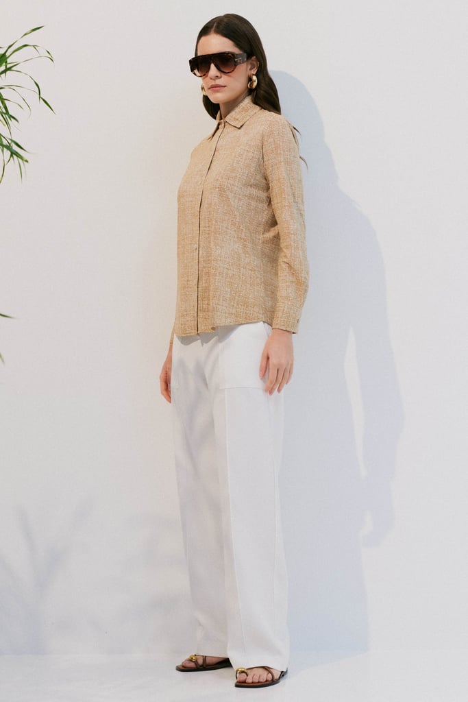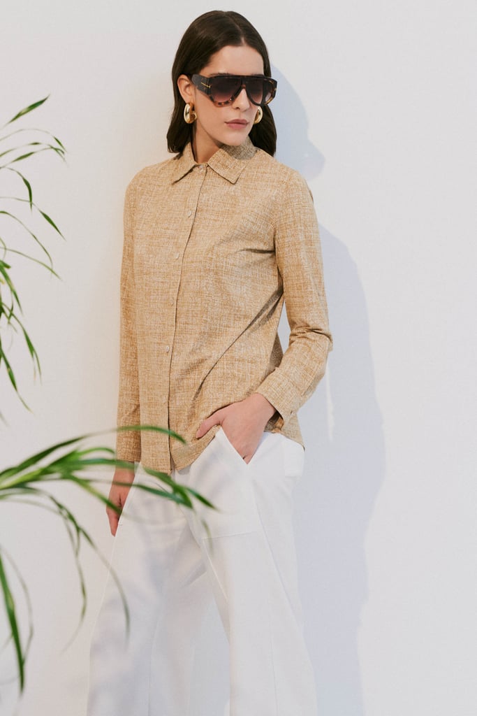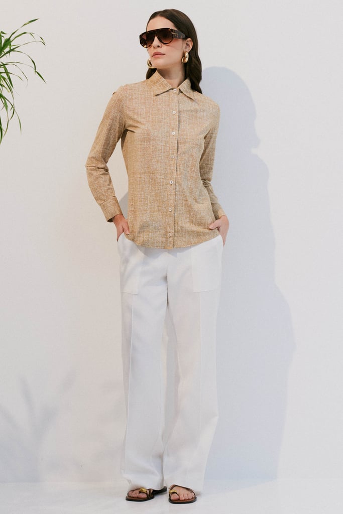 Confeccionada em malha Fluity com padronagem exclusiva que remete ao linho, a camisa possui gola clássica, fechamento frontal por botões e mangas longas com punhos. O caimento é leve e sofisticado, ideal para composições versáteis e elegantes. A malha Fluity é um tecido premium, com toque geladinho e macio, que não amassa, seca rápido e oferece alta durabilidade. Além disso, é sustentável e tecnologicamente avançado.