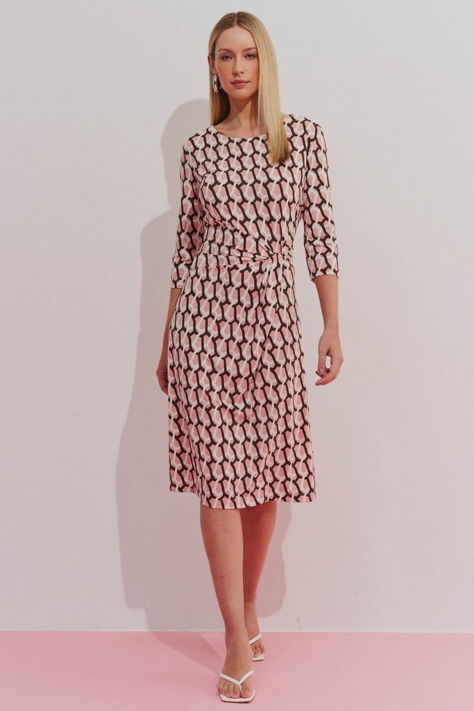 Confeccionado em malha Fluity com estampa exclusiva, este vestido une conforto e elegância. O modelo apresenta decote redondo, mangas 3/4 e detalhe de drapeado lateral, que valoriza a silhueta com sutileza. O tecido premium oferece toque macio, caimento impecável e praticidade, sendo leve, fresco e de fácil manutenção.