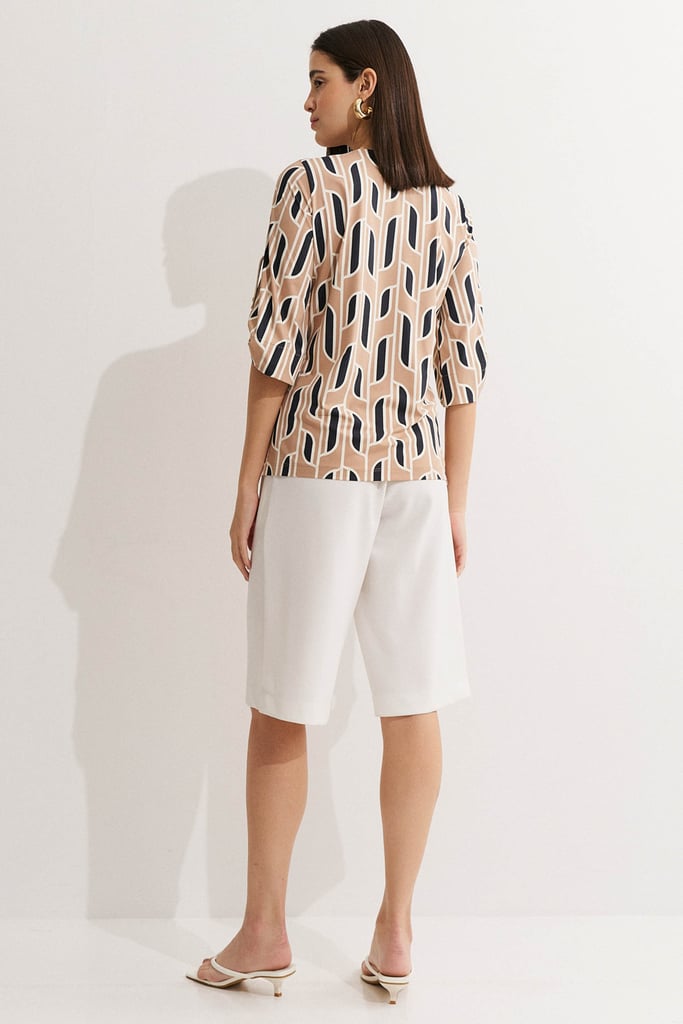 Blusa confeccionada em malha Fluity com estampa exclusiva, que une conforto e elegância em uma modelagem clássica e atemporal. Blusa confeccionada em malha Fluity com estampa exclusiva, que une conforto e elegância em uma modelagem clássica e atemporal. A malha Fluity da Santa Constância é um tecido premium, tecnológico e sustentável, reconhecido pelo toque geladinho, caimento impecável e praticidade, acompanhando a mulher moderna com leveza e elegância em todas as ocasiões.