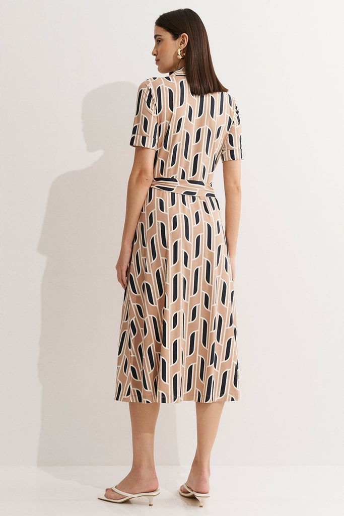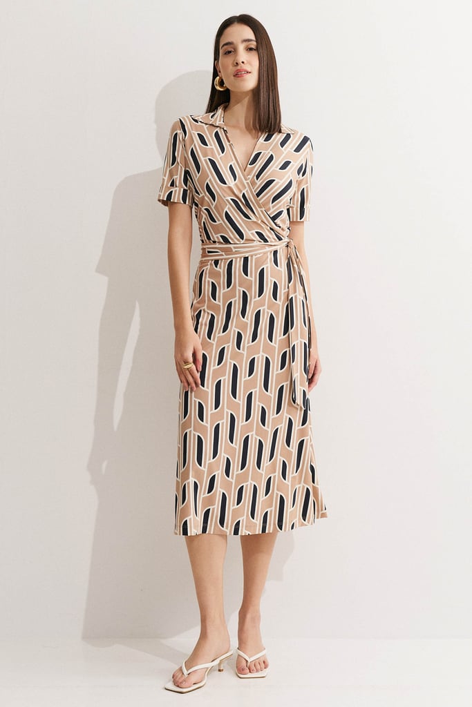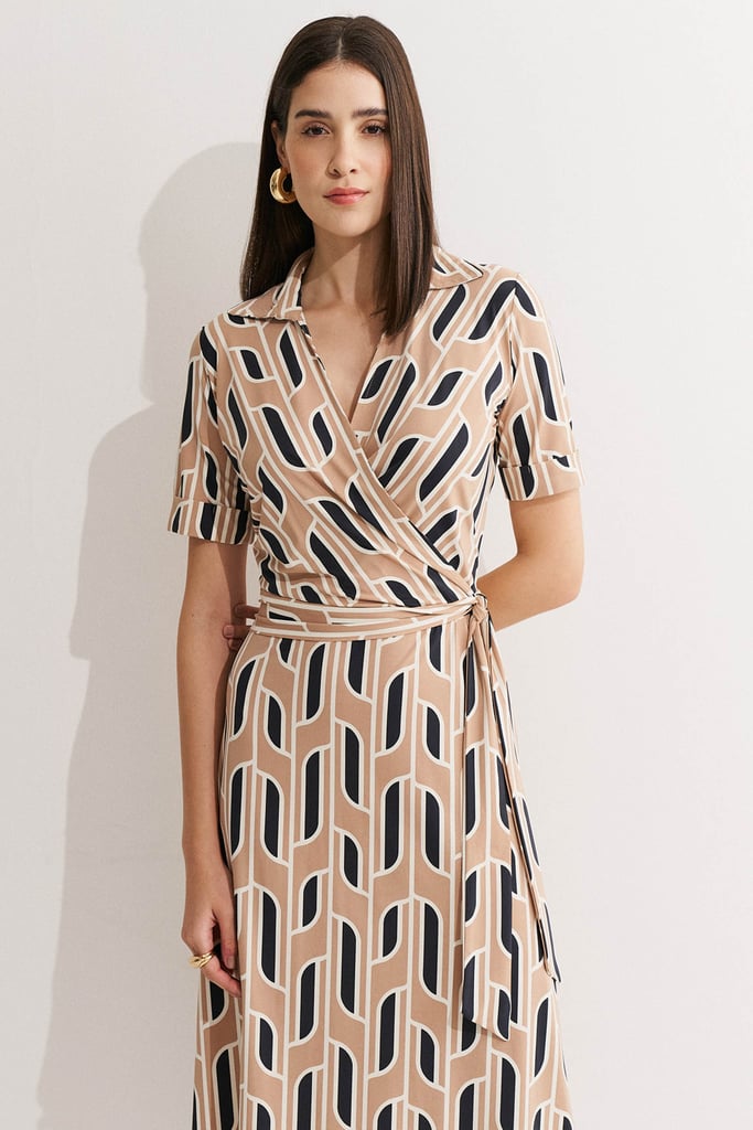 Vestido confeccionado em malha Fluity com estampa exclusiva, que une leveza, conforto e sofisticação. O modelo apresenta decote transpassado com gola, mangas curtas com barra italiana e faixa fixa na cintura para amarração, que realça a silhueta e permite ajuste conforme o corpo. A modelagem evasê garante movimento e caimento elegante, ideal para composições que valorizam a feminilidade com praticidade. A malha Fluity da Santa Constância é um tecido premium, tecnológico e sustentável, reconhecido pelo toque geladinho, caimento impecável e por não amassar, acompanhando a mulher moderna com leveza e elegância em todas as ocasiões.