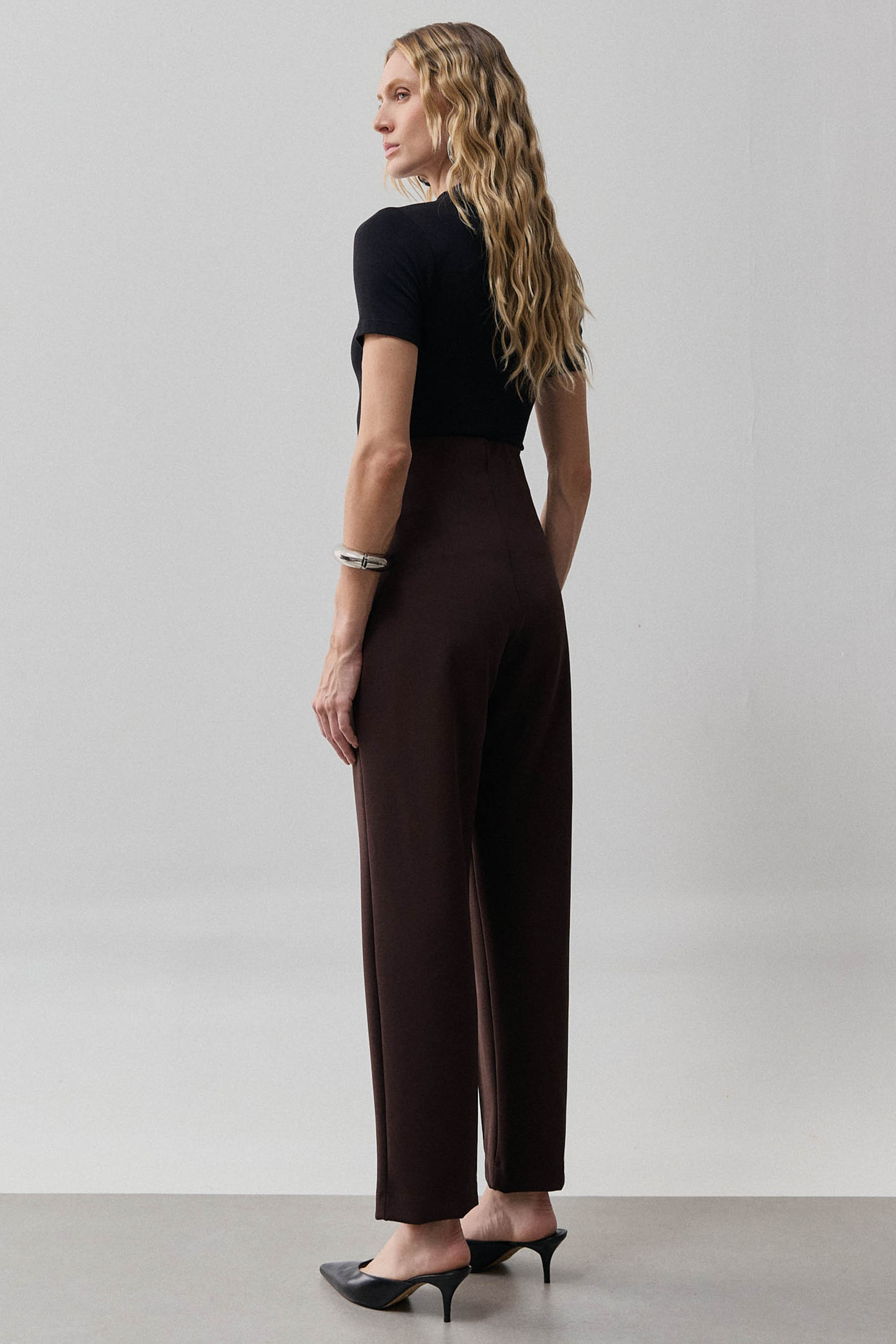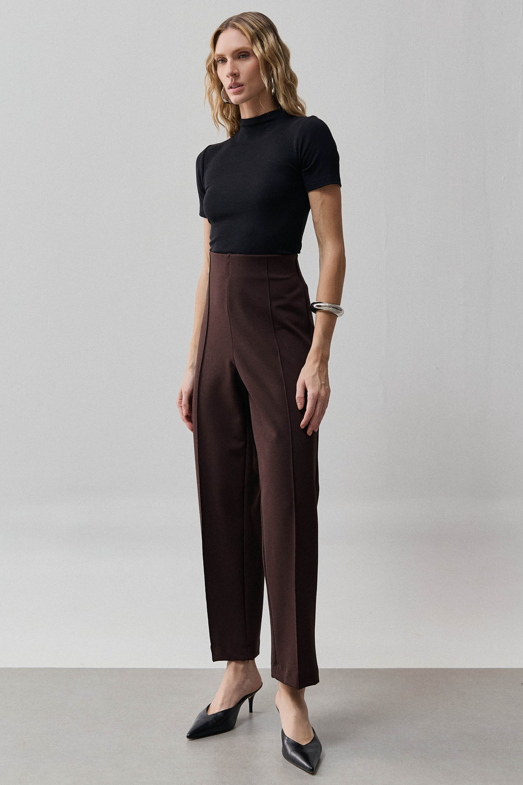 Calça confeccionada em malha encorpada, que não marca o corpo, aliada à alta elasticidade que garante conforto ao longo do dia. A modelagem reta, combinada à nervura frontal, alonga a silhueta e traz um visual elegante e atual. Possui cós com elástico em toda a circunferência da cintura, proporcionando ajuste confortável e caimento impecável.