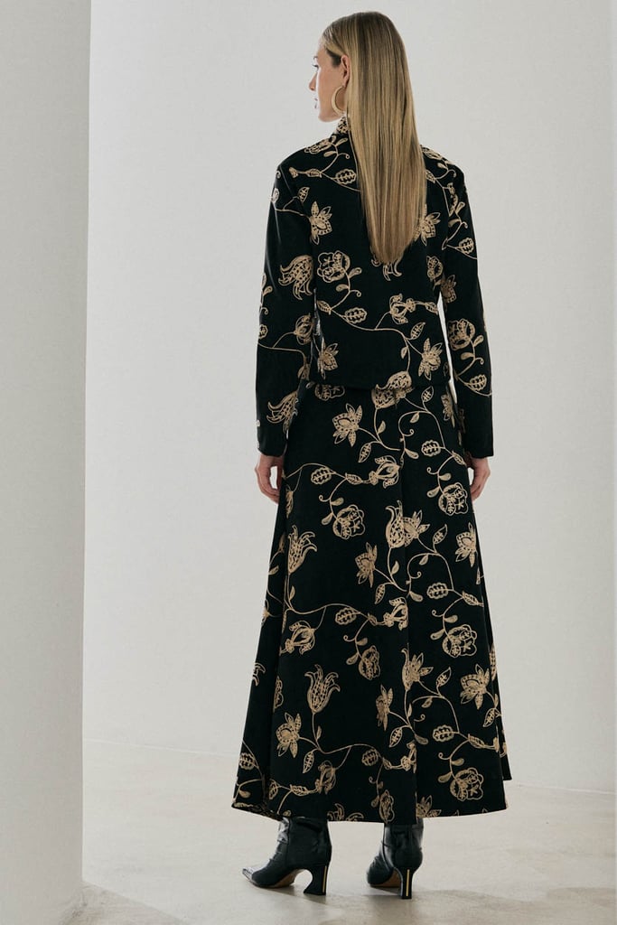 Saia Evasê de Suede Bordada