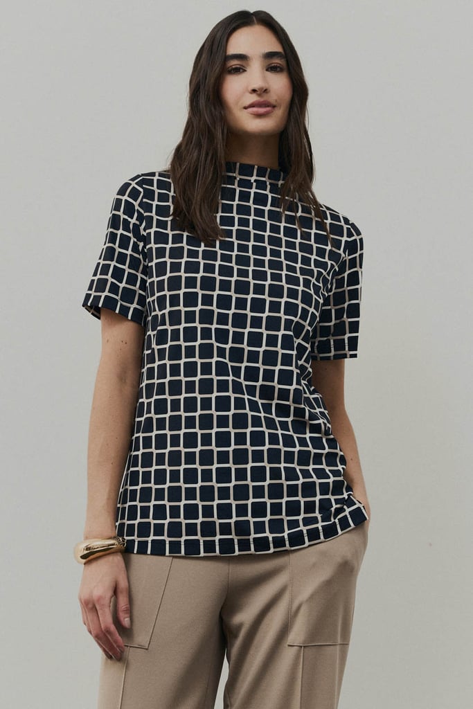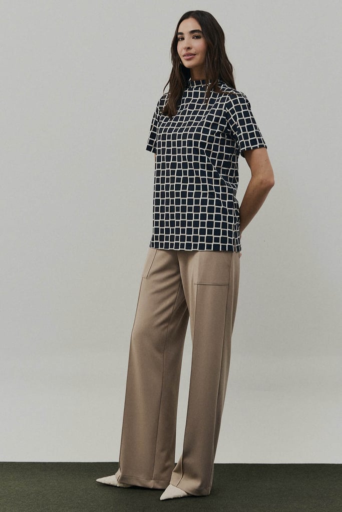 Blusa confeccionada em malha Fluity com estampa exclusiva, proporcionando toque macio, conforto e excelente caimento. Possui gola alta e mangas curtas, resultando em uma peça elegante, versátil e ideal para composições modernas no dia a dia.