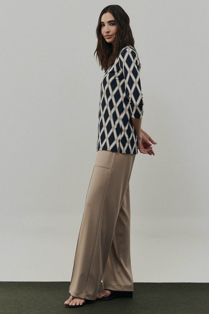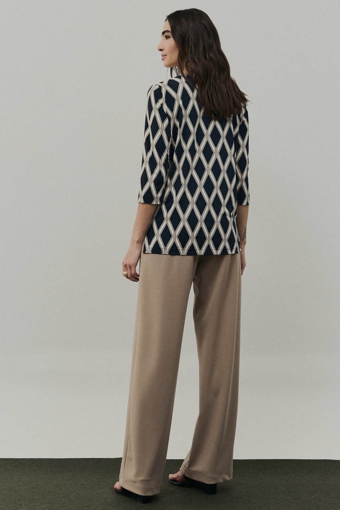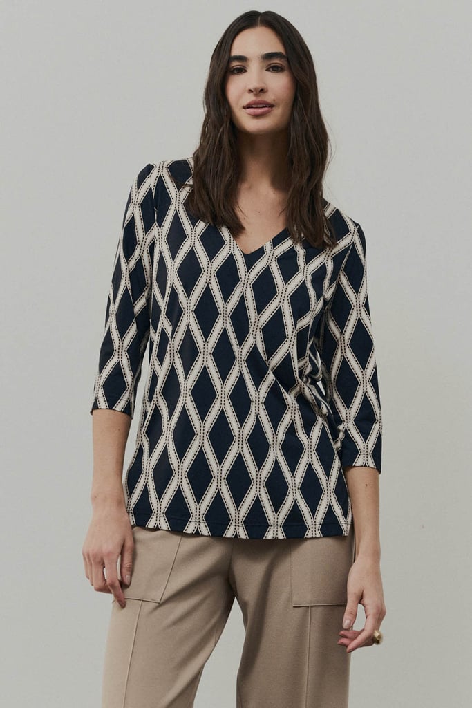 Blusa confeccionada em malha Fluity com estampa exclusiva, proporcionando toque macio, conforto e excelente caimento. Possui decote em V e mangas 3/4, resultando em uma peça versátil e elegante para o dia a dia.